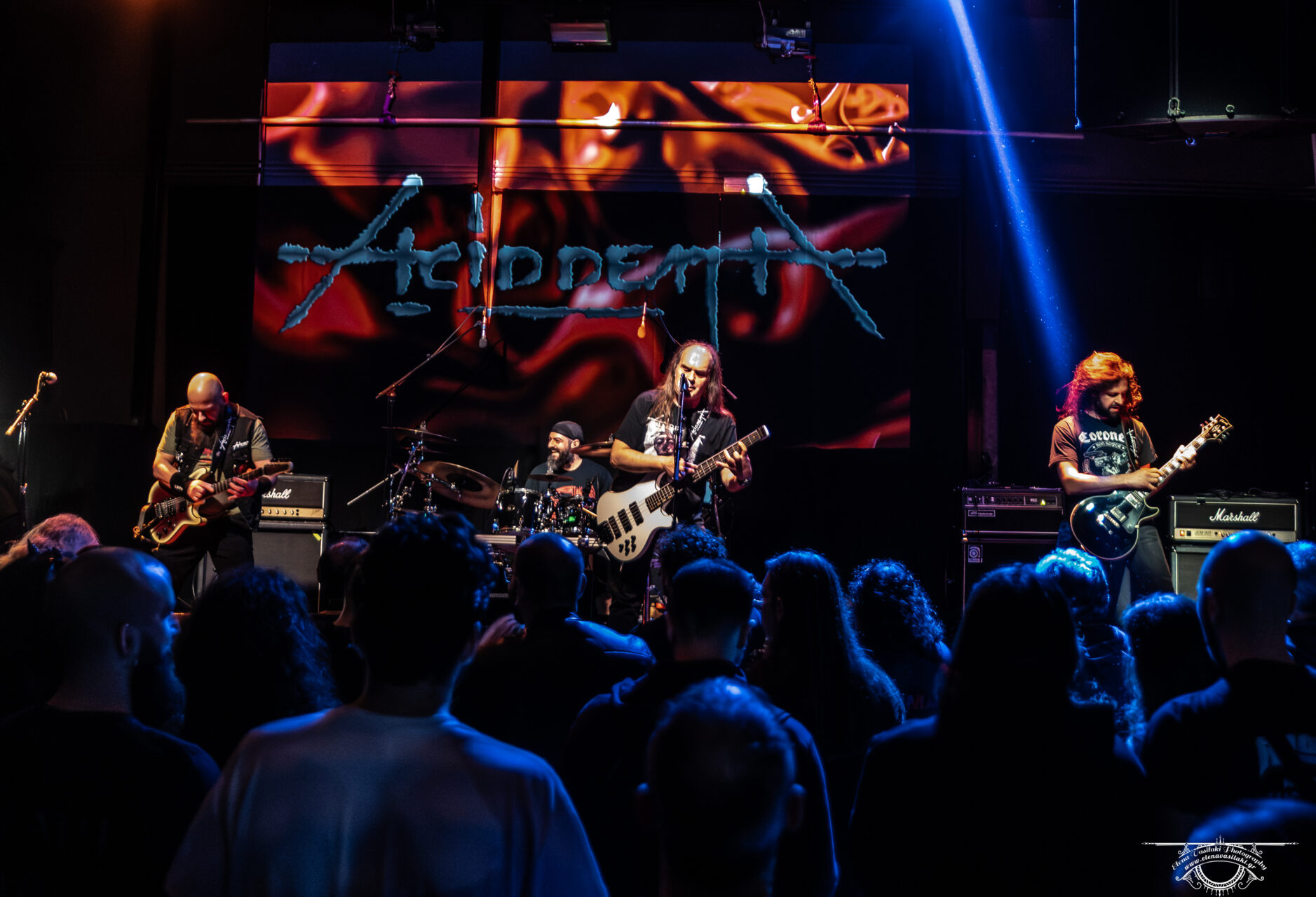 Nachdem Death Courier und Selefice den Abend mit energiegeladenem Power-Metal einläuteten, kamen sie auf die Bühne: Acid Death, Powerhouse-Projekt des charismatischen Multimusikers Savvas Bettinis, der auch für alle Kompositionen verantwortlich zeichnet.