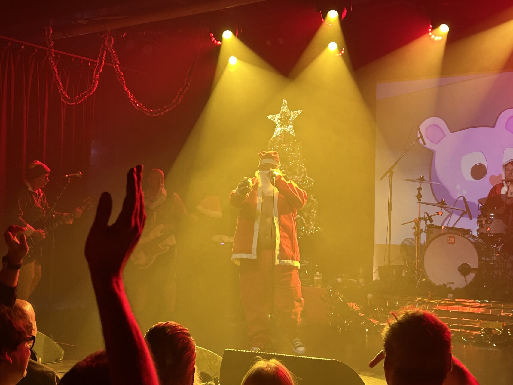 Nach einer kurzen Pause kamen dann Peter And The Test Tube Babies auf die Bühne. Peter stilecht wie eh und je mit Hawaiihemd gekleidet, während seine Band als Weihnachtsmänner und -wichtel verkleidet waren – und diesen Look haben sie bis zum Ende der Show durchgezogen.