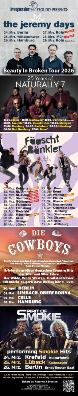 Das Trio fasziniert mit groß aufgehenden Songs mit großer Eingängigkeit voll mit großer Komplexität. Famoses aus Frankreich … Irgendwo zwischen Panic At The Disco, Fallout Boy und Muse.